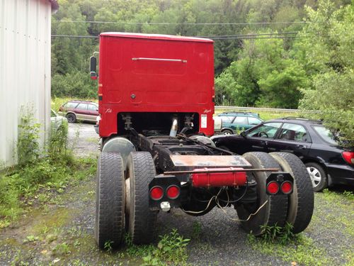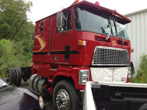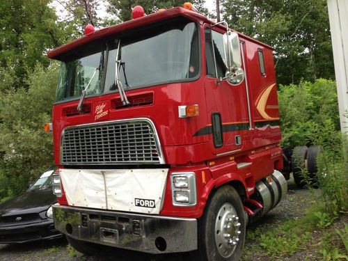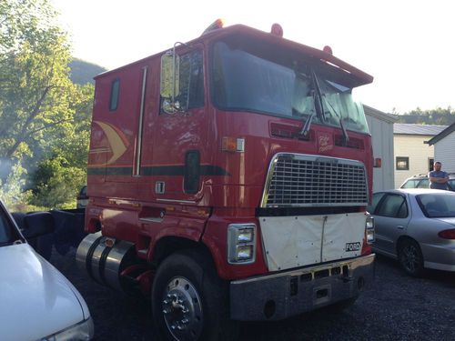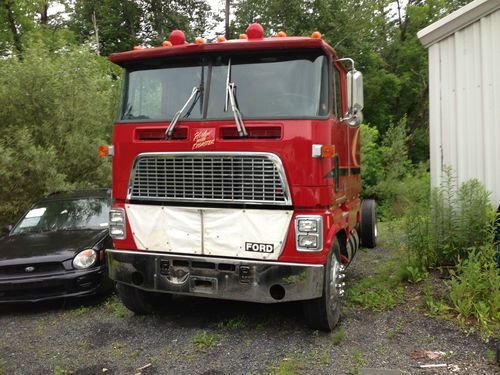 HERE'S A NICE CLEAN GET IN AND DRIVE CROSS COUNTRY 1979 FORD L-9000 CAB-OVER WITH ONLY 260000 ON A CUMMINGS BIG CAM DIESEL ENGINE WITH A 13 SPEED TRANSMISSION. THE TRUCK HAS NEW PAINT AND CLUTCH, I BOUGHT THE TRUCK TO SHIP CARS BACK EAST FROM THE WEST COAST TO SELL, BUT WHEN I PRICED OUT TRAILERS AND THE COST OF INSURANCE THIS PUT A KIBOSH ON THAT REAL QUICK, NOT TO MENTION MY CDL DRIVER HURT HIS BACK AND CON'T DRIVE CROSS COUNTRY. THE TRUCK RUNS 100%. THE ONE CATCH IS THAT THE TRUCK WAS REGISTERED IN VERMONT AND IS 34 YEARS OLD AND VERMONT DOES NOT ISSUE TITLES ON CARS OR TRUCKS 15 YEARS OR OLDER. SO THIS WILL BILL OF SALE ONLY, SO IF YOUR STATE REQUIRES A TITLE (DO NOT BID) MOST STATES DO NOT REQUIRE A TITLE 15 YEARS OR OLDER, BUT THERE ARE SOME THAT STILL REQUIRE A TITLE. I AM A LISENCED BUY THE STATE OF VERMONT AS A USED CAR DEALER SO CAN BE ASSURED THIS IS ON THE UP AND UP.