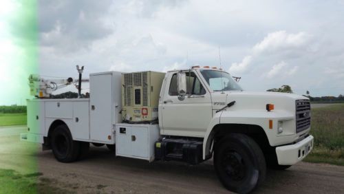 This truck is in excellent condition for its age. I purchased it in 08. In California. I drove my pickup out loaded it on a trailer and pulled it back with this truck. It used one half a quart of oil and the trip was around 1500 miles if I remember correctly. There are no major leaks. In the six years I've owned it. I have not bothered to tune it up. It does not miss and is reliable. The Ingersoll-Rand 175 ft.? per minute air compressor was fully serviced in 08, and shouldn't have over 30 hours on the service. The Ingersoll-Rand compressor has what I believe to be the original hour meter. It reads 2524.0. It is a three cylinder John Deere diesel. That starts well and runs the way it was designed. I have had no problems with this unit. The truck also has a lift more 3200 Crane. It has a 12 foot reach with a controller everything functions properly. There is a power cut off switch and battery just beneath the Crane that can be used to jumpstart the truck battery when properly maintained. Yes, you can charge the Crane battery with the truck's alternator by opening the circuit. It is been run regularly but not commercially. This truck could go to work tomorrow. Where needed. It has been touched up with fresh paint. This would make a great Sand Blast truck. Or jackhammer or concrete drill truck. I would like to keep it. But it's time to sell. The truck. The Crane and Ingersoll-Rand compressor all comic books. Thanks for looking. Have a great day.++No Delivery