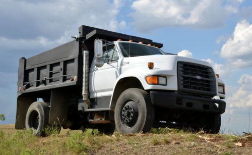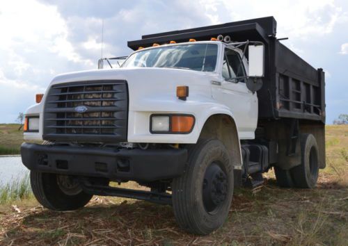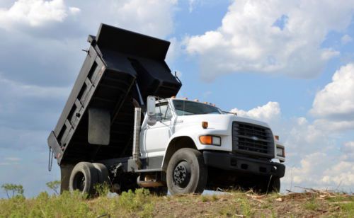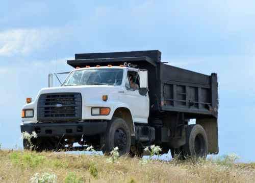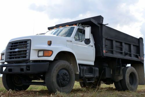 Ford F800 Dump Truck. Vehicle has an inline 6, Cummins 8.3L turbocharged diesel engine and Allison automatic transmission. The dump bed has been sprayed with rhino liner for better durability. AC is ice cold. Air brakes. Low mileage, in great condition! |