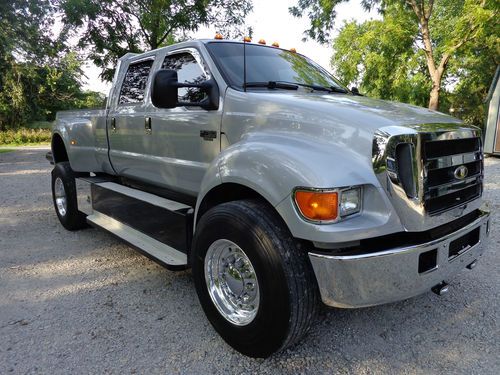 Hate to see this one go!...Beautiful 2005 Ford F750 pickup with only 68k miles on it...Silver with grey and black leather interior...Carbon fiber trim on dash...Cat C7 engine...Allison push button automatic...Air brakes...rear air suspension...Air hookup for trailer...Custom built rear bumper...Triple train horns...Pro Tech aluminum headache rack...Flip down tv/dvd player with remote and two wireless headphones...Super single rear tires...I will be installing new tires on all four corners for the buy it now price...Just serviced and ready to roll...power windows/locks/mirrors/seats...Heated leather seats...tilt wheel...I have clean and clear title in hand with no liens...In my opinion this is the best looking one of these that I have seen...It is in really good shape inside and out...Few minow imperfections/scratches/chips consistent with age...SERIOUS buyers can reach me at 816-6041-8094....I will not finance this truck-don't ask...Cash only