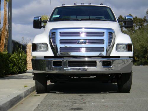 2007 Ford F-650 Custom Pickup For sale is a 2007 Ford F-650 pickup with a 250hp C7 Cat and a six speed Allison transmission with push-button shifter. Unlike the underpowered powerstroke engine, this Cat engine will pull all through the powerband, and will tow just about anything! This truck is covered in Dynamat to give it a nice quiet ride, and when you close the doors they have a nice Cadillac like "thud" instead of rattling like a tin-can, like most doors. This truck has a Brand New 2012 pickup bed with led lights and a chrome bumper. This truck has brand new air bags and shocks. It also features gray leather seats, and a painted frame that is so clean you could eat off of it! One unique feature of this truck is the door handles, they are precision machined from 6061-T6 aircraft grade aluminum, unlike many of the trucks on ebay which has cheap $30 chrome covers, these door handles cost over $700! It also has over $200 in LED lights! This truck will cruise at 75mph all day and still get 14 mpg. This is a low mileage, custom pick up that needs a new home. If you have any questions, feel free to call Chris at (619) 263-6905 This truck features: