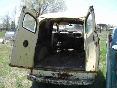 Was an original bakery delivery truck.(can see the business name under the paint over). This is a restoration project. No noticeable cancer, just some dents and surface rust. Hood and front clip are just sitting on the frame. Doors all work, but needs glass. Rear doors work good. Original interior wood. No motor or trans, ROLLING CHASIS. This would make a great rat or hot rod, or all original restoration. Winning bidder can leave here as long as needed and find competitive shipping bids. Can deliver to states surrounding utah for a nominal fee. Can throw in a rebuildable 1985 351W if you want it. CLEAR TITLE INCLUDED. Thanks for looking.