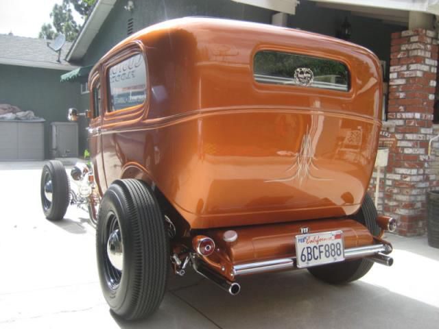 1932 ford tudor sedan.steel 2 1/2 inch chop, corn husker frame 350 crate motor with 3 carbs ,auto trans. new interior ,a/m f/m cd player wheels ,tires, a/c dropped and drilled chrome front axle, undercarriage is all finished matching copper paint and chrome. highly detailed pro built magazine car. no issues. build cost well over 100 k. the pictures speak for the build quality! Too much to list .