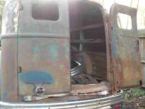 There is one of these (1940) a buyer can get for about the price mine is bid to now. It does not steer, frame is shot, body is falling down around frame/dragging on ground (no floor & not much cross support), no engine, no trans, no inner woods, rear doors shot, etc. Which means: you want this truck I have for sale that has some solidarity to it -BUCK up the moola; pay the price; accept the reality. This truck can be lifted off the frame, repaired/prepped for original or hot rod, and bolted back down to its solid frame or hot rod chassis. It won't crumble in the process. $30,000 + market value when done, whether it is made original or hot rodded. If you plan on waiting for a miracle (your price purchase around $3000), please MOVE ON. This will sell for around my price, or never! The frame without the body is worth $2000. Add the body (or fabricate one?) value & ownership clear title with a factory stamped frame; walla-your purchase price is my Ebay price as you see it. If you find another delivery truck WWII wholy grail project better than this at this price-buy it.