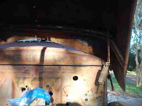 Solid metal throughout considering. Some inner original floor & side wood still in place. This truck is worth my Buy Now price even if you are going to just remove & install the body on another Ford chassis or onto a Hot Rod ready chassis. Both doors are solid with crank mechanisms; neither are latching, hinges are solid but need correct pins (no glass other then patterns stored in cargo). Rear doors seem decent.