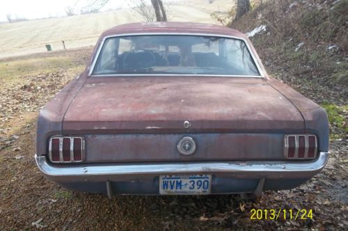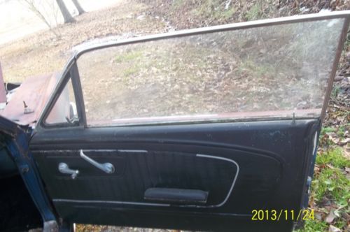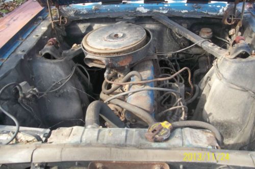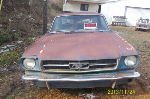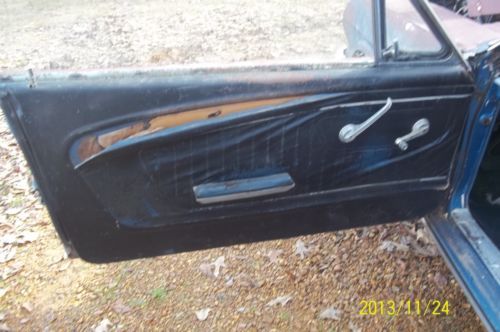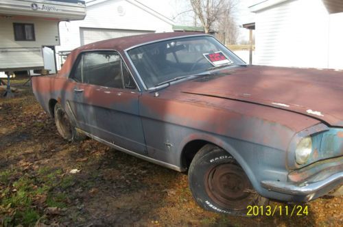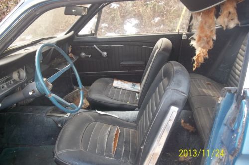 Good project car.1965 Ford Mustang Assembly plant- Dearborn MI. Body code coupe. Engine Type 200cid 6 cyl. production # 681177. data plate 65A M 22 07u 34 3 1. Body 65A 2 door hardtop, standard interior. Color, Wimbledon white. Trim 22 blue crinkle. Data July 07, 1965.D.S.O. 34 Indianapolis. Axle 3 3:20:1 conventional trans. 3 speed. I just got the car, haven't had time to look it over. No keys. Motor turns over by hand, has a generator, 64 tail lights. Parking brake was pulled out I pushed it in and rear wheel will not roll. He said hub caps are in trunk. Rust in bottom of both front fenders. I haven't seen under car or floor pans or trunk pans. It will need a hood. All chrome is there as far as I can tell. Interior will need to be redone. It was blue but now black. I have a good title in my name. $500.00 non returnable deposit within 4 days.