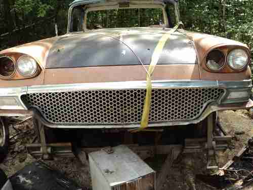 1958 Ranchero restoration project look closely at pictures there are 4 doors, two tailgates , two fancy grills. This vechile has no motor or rear axle but we have a tow truck to help load it onto your trailer. All of the parts come with the car. very nice nose solid floors this could be a great prodject for the right person but we like old diesel cars with standerd transmisions. first 30 days of storage is free after $50 a month. what you see is what you get Happy bidding