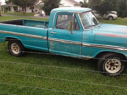 1971 Ford Ranger truck, has original 302 and doesnt use oil. Truck is two weel drive, manual transmission. Has rust at rocker panels, tailgate, and bed. Paint is faded, passenger door has some scratches and overall truck as some dents. Inside is still original and seat is torn. Truck is a farm truck and runs good. Has like new rear mud tires. Any questions please ask. Will try and load more pictures later. Mileage is over 100000, odometer indicates 15XXX, but doesn't show rollover.