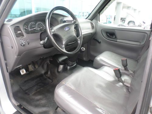 CARFAX CERTIFIED TWO OWNER RANGER REGULAR CAB XL. IMMACULATE CONDITION INSIDE AND OUT WITH THE EXCEPTION OF A SMALL TEAR IN THE DRIVERS SIDE OF THE FRONT SEAT ON THE SEAM. THE BODY IS STRAIGHT AND RUST FREE. AS YOU WALK AROUND THE TRUCK, IT DOES HAVE SEVERAL SMALL DINGS AND SCRATCHES, BUT NOTHIN G THAT DRAWS YOUR EYES ATTENTION, YOU LITERALY HAVE TO LOOK FOR THEM. AFTERMARKET STEREO WITH CD, BEDLINER, AND CHROME TRIM RINGS AND CENTER CAPS. NEVER SMOKED IN, THE TRUCK WAS GARAGED FOR A GOOD PORTION OF ITS LIFE. NEWER TIRES, TOW HITCH AND ALOT OF MILES LEFT TO DRIVE, THE TRUCK RIDES AND DRIVES WELL. THE CLUTCH AND TRANS SHIFT EFFORTLESSLY AND THE ENGINE RUNS SMOOTHLY. A REALLY NICE LITTLE TRUCK FOR THE MONEY.