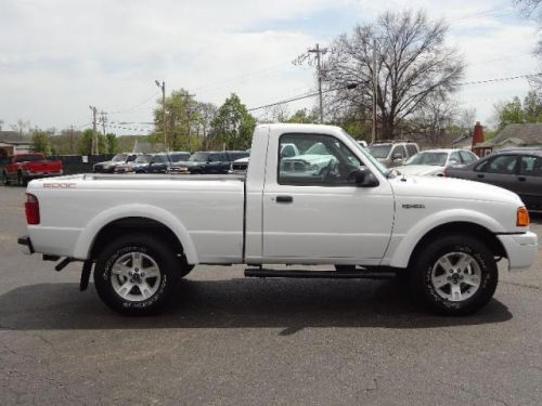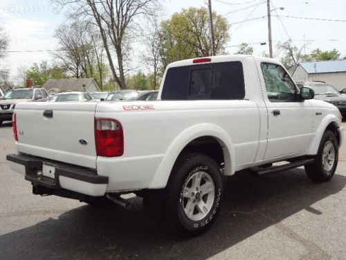Super clean and fully inspected Ranger Edge Plus 4WD finished in Oxford White over Charcoal interior and equipped with the fuel efficient 3.0L V6 engine and 5spd automatic transmission. With just 112K miles, this truck is in exceptional condition inside and out and is loaded with options and features including: Edge Plus package, Automatic transmission, Electronic 4WD system, HD Towing package, 16 5 spoke alloy wheels, Tilt, Cruise, Air Conditioning, Sliding rear window with privacy glass, White faced gauges, 2-tone interior, Fog lamps, Side steps, Tow hooks, AM/FM/CD/MP3/Cassette, Bedliner, and more. Truly an exceptionally clean, great looking, low mileage Ranger that should return excellent MPGs! Please visit us at our website, www.autolivery.com, for a COMPLETE description of this vehicle, including more pictures, vehicle and warranty info. A link to our website can be found in the "About the Dealer" section found in this ad.