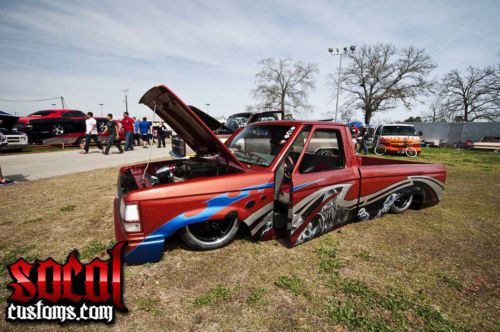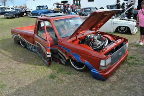 THE RECLUSE The Lowdown(MiniTruckin December 2013 COVER TRUCK) 1992 Ford Ranger Rolling Attire Wheels: 17-inch Eagle Alloy Tires: 205/40R17 Chassis Modifications Suspension (front): Toyota front clip, custom spindles, Firestone 2600 ???‚¬?„?bags Suspension (rear): Cantilever setup, Pete & Jake???‚¬?„?s chrome four-link, Firestone 2600 ???‚¬?„?bags Compressor(s): Dual Viair 380s Frame Mods: Complete tubular rear frame, smoothed and painted Misc.: Stainless 3/8-inch air lines, custom 10-gallon fuel cell Body Modifications Shaved: Door handles, shaved emblems, gas door, tails Bodydrop: 7?‚? 3/4 inches Body Mods: Custom rockers, cowl induction hood, smoothed entire bed, molded tailgate and roll pan Bolt-ons: Explorer billet grille Misc.: Webasto sunroof Paint Brand & Colors: PPG Prowler Orange, House of Kolor white, Meter Maroon, Black Pearl, Porsche Rivera Blue, Strato Blue Misc.: Airbrushed demons, skulls, airbrushing by David Ludwig of AirArt Customs,300 hrs of labor Interior Seats: Honda Prelude wrapped in tweed and vinyl Dash: Shaved, painted, and wrapped in tweed Misc.: Budnik Mercury billet steering wheel, custom center console, custom shifter Stereo Head Unit: Pioneer Engine: 4.0 V6 out of a Explorer, Cold air intake, 15K miles on engine $500.00 Deposit due no later than 24 hours of auction close. Final payment due no later than 3 days of auction close. I reserve the right to end the auction early as truck is for sale locally |