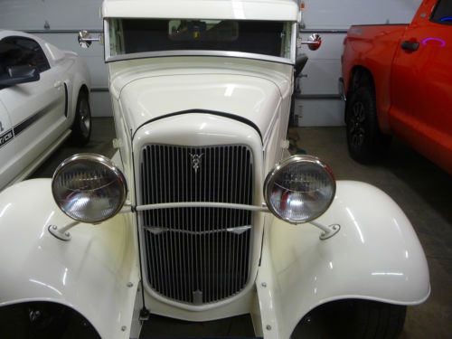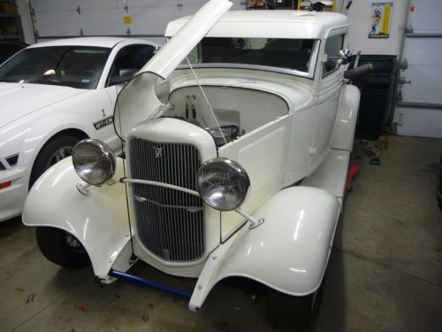 1932 FORD MODEL B PICK UP TRUCK-ALL STEEL WITH A 1932 FORD TITLE. HAS A 350 CHEVY MOTOR AND 350 AT. THIS TRUCK HAS BEEN A PROJECT FOR OVER 30 YEARS. HAS 0 MILES. THE TRUCK HAS A 4 LINK SUSPENSION IN THE REAR. STAINLESS STEEL EXHAUST, FRONT DISC BRAKES, REAR COIL OVERS. ALL NEW FORD GUAGES, NEW STEREO, NEW GLASS. THE PASSENGER DOOR GLASS HAS A CRACK RIGHT DOWN THE MIDDLE FROM INSTALLATION-I COULDN'T GET A GOOD PICTURE OF IT. HAS POWER WINDOWS THAT WORK AND FLIP OUT WINDSHIELD. TOP HAS BEEN CHOPPED 4". FRAME HAS BEEN BOXED. ALL OF THE FABRICATION WAS DONE BY A PROFESSIONAL HOT ROD SHOP IN INDIANA. HAS A 4" FRONT DROP AXLE AND 4" DROP SPRING. THE REAR OF THE TRUCK HAS BEEN TUBBED TO ACCEPT THE EXTREMELY LARGE TIRES ON THE BACK. MOTOR AND TRANSMISSION WERE COMPLETELY REBUILT. HAS A 600 HOLLEY CARB. NEW BATTERY THAT IS LOCATED IN THE REAR OF THE TRUCK BEHIND THE LICENSE PLATE. THE BATTERY HOLDER IS MADE OUT OF STAINLESS STEEL AND IT PUSHES UP AND HIDES BEHIND THE LICENSE PLATE. ALSO HAS A BATTERY CUT OFF SWITCH. NEW WIRING KIT WITH BRAKE LIGHTS, TURN LIGHTS AND HEADLIGHTS. HEATER CONTROLS WORK. A/C CONTROLS WORK. HAS ADJUSTABLE COOLING FAN SWITCH. COOLING FAN IS WIRED SO WHEN THE A/C IS ON THE COOLING FAN WILL RUN. NEW SET OF MICKEY THOMPSONS ON THE REAR-THEY ARE 29 X 18.00 R15LT SPORTSMAN S/R. THE TIRES HAVE FLAMES CUT IN THE TREAD FROM THE FACTORY. HAS CUSTOM WIRE SPOKE WHEELS MADE JUST FOR THIS TRUCK. I HAD A SET OF MICKEY THOMPSONS THAT WERE 33 X 21 BUT THE TRUCK SAT UP TOO HIGH IN THE BACK SO I BOUGHT THE NEW TIRES. NEW STAINLESS STEEL HEADLIGHTS WITH THE FORD LOGO IN THEM AND IN THE GLASS. NEW STAINLESS STEEL TAIL LIGHTS AND OUTSIDE MIRRORS. HAS A REAR VIEW MIRROR. NEW HEADLINER AND CARPET. THE TRUCK DOES HAVE THE SIDE HOOD LOUVERS ON-IN SOME OF THE PICTURES THEY AREN'T ON YET. THE TRUCK WAS REPAINTED AND THERE ARE A FEW IMPERFECTIONS IN THE PAINT-IT CAN BE TOUCHED UP SINCE IT'S WHITE WITH BASE CLEAR. AND THERE IS ALSO A CRACK IN THE RIGHT FRONT FENDER WHERE THE FENDER BOLTS TO THE FENDER BRACE. SEE PHOTO. THE TRUCK IS NOT COMPLETELY FINISHED-JUST NEEDS A FEW MINOR DETAILS-NEEDS DOOR PANELS AND KICK PANELS AND ONE OF THE A/C LINES NEEDS AN END ON IT. VERY UNIQUE TRUCK JUST NO ROOM FOR IT. THE BUYER MUST COME AND INSPECT THE VEHICLE IN PERSON. WILL NOT SHIP UNLESS THEY INSPECT FIRST. MUST PICK UP THE TRUCK WITHIN 10 DAYS. $100. DEPOSIT THROUGH PAYPAL DUE IMMEDIATELY TO HOLD THE TRUCK. THE ONLY WAY I WILL HOLD IT IS WITH A DEPOSIT. CASH OR WIRE TRANSFER ONLY FOR THE BALANCE DUE. NO CHECKS OR CASHIER'S CHECKS. I'M SURE I FORGOT SOME THINGS-EMAIL QUESTIONS. CAN TAKE PHOTOS OF ANYTHING YOU WANT TO SEE.