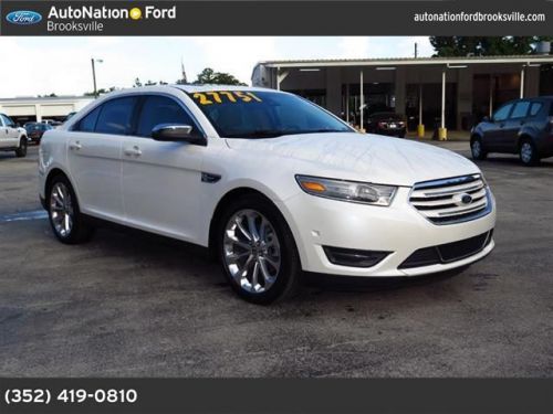 Thank you for visiting another one of AutoNation Ford Brooksville's online listings! Please continue for more information on this 2013 Ford Taurus Limited with 24,572 miles. This Ford includes: WHITE PLATINUM METALLIC TRI-COAT *Note - For third party subscriptions or services, please contact the dealer for more information.* You could spend more on fuel each month than on your vehicle payments, so why not consider one with exceptional fuel economy like this 2013 Ford Taurus. Intricately stitched leather and ergonomic design seats are among the details in which test drivers say that Ford Taurus is in a league of its own This gently driven vehicle has been well-kept and still has the showroom shine. Driver and passengers will celebrate the comfort and convenience this Ford Taurus offers with its well-considered features. You can forget your phone at home, but thanks to this car you'll always have your navigation system. High-end wheels help round out the many options of this Taurus Limited. More information about the 2013 Ford Taurus: Clean, attractive packaging makes the 2013 Taurus one of the most appealing big sedans on the market. With a roomy interior, a smooth ride and striking interior styling, the Taurus now offers a luxury-car feel at a family sedan price. The Taurus is packed with high-tech features, offering many that aren't available on any other non-luxury-brand sedans. What's more, the high-performance Taurus SHO makes a solidly performing and stylish alternative to sport sedans from Germany--at a fraction of the price. Interesting features of this model are Stylish design inside and out, roomy, luxurious interior, range of high-tech options, and strong performance from SHO model Please call888-490-6841, Internet Sales Manager, for special Pricing. No combined discounts or sales. Good Credit, Bad Credit, No Credit, No Problem!
