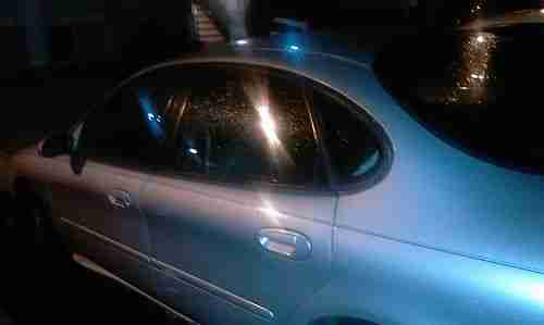 She's not starting. This 1998 Silver Ford Taurus 4 door Sedan with dual exhaust, is packed with grey leather seats, sunroof top, power locks, power seats,power windows, anti lock brakes, driver airbags, passenger airbags, cruise control, AM/FM radio, CD player located in trunk (doesn't work properly) cassette player and alarm system. She presently have 158,000 miles on her, with good tires. I originally bought her on eBay about seven years or so ago in Greensboro NC, where most of her country mileage was acquired, I drove her back to the Maryland area. I am her second owner, since then she has acquired some dings on both sides of the car. Inside of the car is decent, there is a coffee stain on the driver side carpet, oops. Someone tried to open the arm rest from the passenger side, causing it to be loose. When the front door is open you will see some rubber tear from me locking myself out, attempting to get back in. Door light stays on, I don't know why, it doesn't bother me. The driver side, side seat has some noticeable wear.
