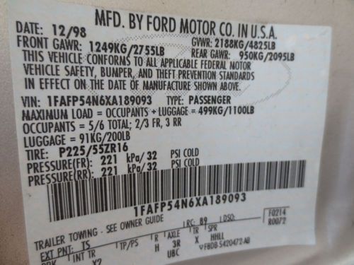 1999 Ford Taurus Sho V8 For Sale By Owner. on 2040-cars