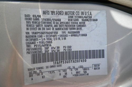 2000 Ford Taurus Se Georgia Owned Alloy Wheels Traction Control No Reserve Only on 2040-cars