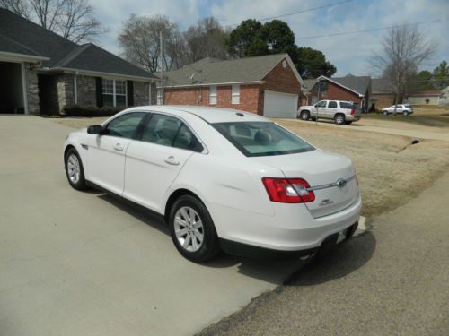Up for sale is a 2010 Ford Taurus SE. It has the V6 enigine with automatic transmission and just under 89,000 miles. This has been a great car and has had no problems with it. The interior has lots of room and a nice large center console with cupholders and lots of storage. It is clean with minimal signs of wear. The exterior is white in color and in good shape. There are a few paint chips here and there, mostly on the front and rear bumpers, but nothing major. This car has never been involved in an accident and never painted on. This car runs great with no problems and gets very good fuel mileage. The tires are also in good shape with plenty of tread left in them, probably at least 60% tread remaining. This car was/is owned by my sister who lived in Franklin, Tn. She was recently transferred to Utah and decided to leave the vehicle here with me to sell instead of taking it with her. Please email me with any questions. Thanks |