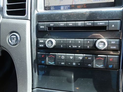 Ford says the new interior, which seats up to seven people, features high-quality materials and fine detailing, such as an "ultra-soft" leather wrap for the instrument panel and leather and carbon-fiber details on the seats. Ford's Sync connectivity system with MyFord Touch makes the car a wireless hotspot, and there's a tablet docking station for second-row occupants.