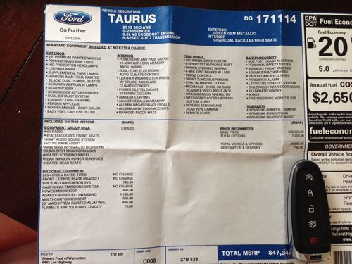 2013 Ford Taurus Sho Twin Turbo Awd Green Used on 2040-cars