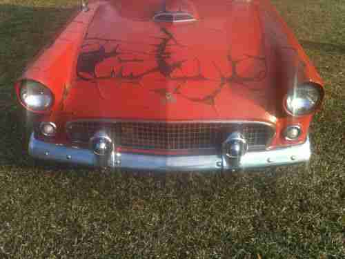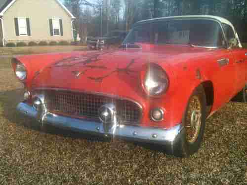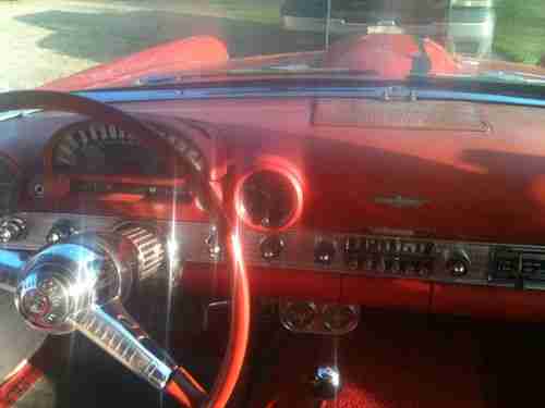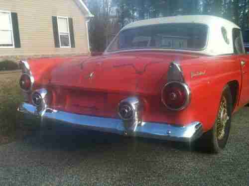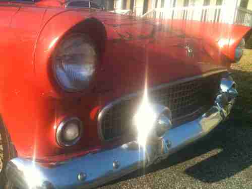 You are looking at a 1955 Ford Thunderbird with the original V8 292 motor and transmission having only 19,500 miles. This car cranks and runs like a top. The transmission shifts smooth and has no leaks. Brakes have recently been redone and stops fine. NEVER kept outside. The body is in amazing condition and has no dents, bondo, or rust at all. The only rust is on the frame that can easily be removed. I had the interior redone back to the original Red and White pattern. The paint began to chip off about 15 years ago while sitting inside the shop. The wheels need to be redone. If you are looking for an easy T-Bird to restore, then this is the car for you. If all you did was paint and rechrome the rims, you would have one heck of a car. Own a piece of American history that will never lose value, character, or fascination. People will always be intrigued by the 1955 Thunderbird and will only become rarer with the passing of time. If you would like more information, feel free to contact me and I'll answer any questions you may have. Also, I can email you as many pictures as you would like. Thank you for looking and happy bidding!