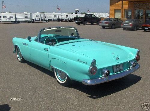 1955 Ford Thunderbird, never wrecked and with 20,500 miles. Starts,Drives and Rides like like a Cadillac.You won't find a more complete and reliable car.Matching numbers 292, with new carburator. This car came from the factory with power seats, power windows, but no power steering. Both tops including, with the original non-port hole hard top. Car has excellent paint, it will get a 10 from 2 feet away. Bumpers could use a deep repolish to take out small scratches. Car has NEW Thunderbird AM/FM radio, however the original radio comes with the car. It works well, just limited to AM. This car was number 8016 off the assembly line of over 16,000. As you look underneath the car you will see original paint on the underside, new exhaust and new brakelines and master cylinder. This car has been converted to12 volt. All numbers match on the car. I do not think you will find a better car and the color is a real head turner.