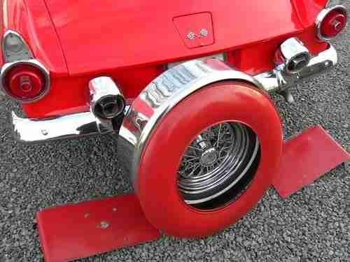 DESCRIPTION 1955 FORD T-BD REPLICA, AUTHENTIC TO THE ORIGINAL, WITH THE CORRECT INTERIOR, SEE THRU SPEEDOMETER, PROPER LOOKING DOOR PANELS, SEATS ENTIRE DASHBOARD,CARPETING ETC, THIS CAR ALSO FEATURES A NO RUST HEAVY DUTY FIBRE GLASS BODY, FENDER SKIRTS AND AS A BONUS ADDITION A NOT MOUNTED CONTINENTAL KIT, AS SEEN IN THE PHOTOS. MOST REPLICA T-BD;S HAVE A HARD TOP, THIS CAR HAS A BRAND NEW FOLDING SOFT TOP WHICH IS MUCH RARER. THIS CAR ALSO HAS POWER STEERING AND BRAKES. THIS CAR ALSO HAS REAL TINTED GLASS WINDOWS, NOT LUCITE PLASTIC ONES LIKE OTHER REPLICAS. THIS CAR IS POWERED BY A POWERFUL ECONOMICAL OVERHEAD CAM INLINE FORD 4 CYL ENGINE, COUPLED TO A 4 SPEED MANUEL TRANSMISSION. PLEASE NOTE THIS CAR WAS FACTORY BUILT BY SHAY USING ALL BRAND NEW FORD PARTS NOT DONOR CAR PARTS. THESE CARS WERE SOLD AT FORD DEALERS AND GUARANTEED BY FORD DEALERS. WHEN THEY WERE BUILT.