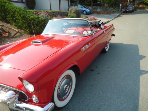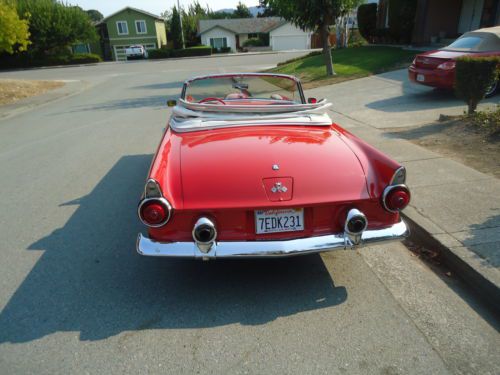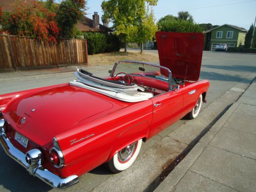 This Is a 1955 Thunderbird with 81,500 original miles. It comes with a convertible top. It would be hard to find a car as clean as this with the body it has I am told by the local classic car people . It has a new Mallory Distributor , A New Generator , A new Horn along with many other new parts .It does need a couple of other minor things done to it like the Soft top to be adjusted The clock repaired ( 125.00) . The motor runs great, the car looks great and please remember most old cars have some kind of a small leak Please if you want to buy this car Have a local mechanic in this area do a report for you or come to Novato, Calif 94945 for your own inspection as it is the buyers responsibility to check out this car before purchase. I can also give you the names of local people in this area and you can pick one to do your Inspection. Please feel free to ask the private party owner questions. 415-254-3995 . caarea2@aol.com
