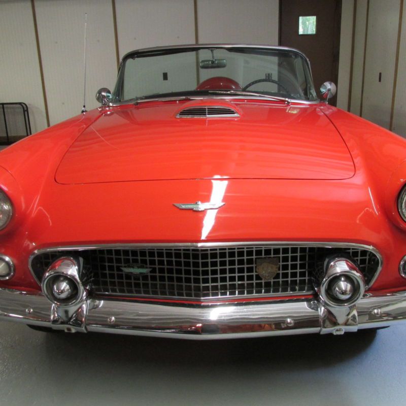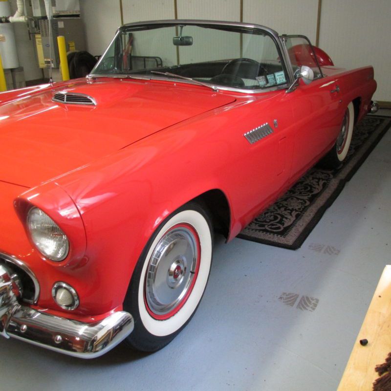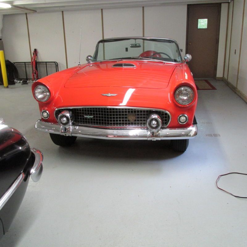 Stored in a climate controlled garage and covered at all times. Dan, my friend, has decided to get a different vehicle and sell this 56 T-Bird. The T-Bird runs strong. The engine runs and looks like some one before has gone through the engine. The body, floor, frame and underside are in nice condition. Tires are great! Brakes work fine but New drums, shoes wheel cylinders and hardware are in the trunk ready to be installed to make brake system work like new.
