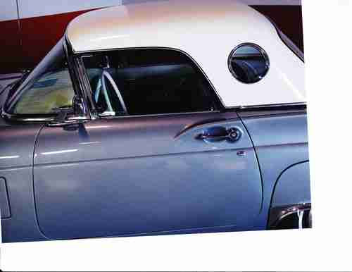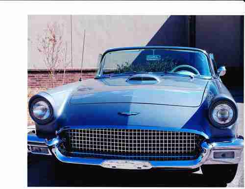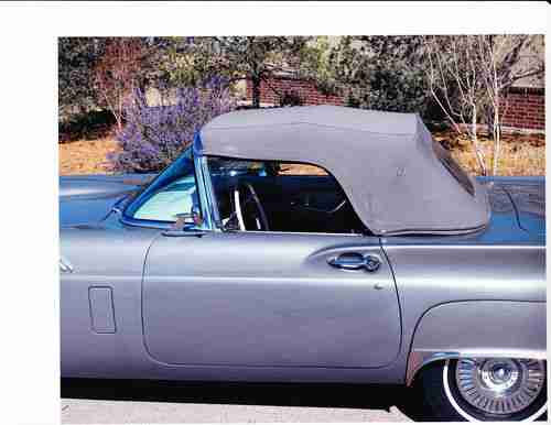 We proudly present this California fourth owner '57 Thunderbird. The previous owner was a meticulous Baby Bird fanatic who had the car for 23 years.The car has a new grey soft top with powder coated frame and bows, restored white porthole hard top, power steering, telescopic steering wheel and A/C. The power brake assist has been removed and it has been upgraded with a disc brake kit on the front. The car stops straight and without effort or pulling. This is a factory correct rare Gunmetal Grey car. It has had a Sanden SD-507 A/C unit (which blows very cold) added. It has had the following repaired or replaced, mufflers, exhaust system, fuel system, shocks and sway bar, rear brakes completely rebuilt, complete cooling system overhaul including new radiator and heads redone with hardened seats. the paint is extemely good with plenty of shine and reflection. the chrome and all bright work are very nice and all the gauges, lights (including interior, turn signals and dash lights), tachometer, radio and clock work. we have receipts back to 1988 including the original bill of sale. this Bird looks spectacular, drives great and has just the "look" when you see it.