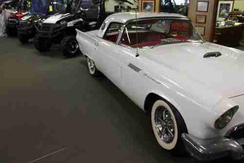 This is a 1957 Ford Thunderbird. Its in good shape, good tires, Crager aftermarket wheels, new tires, runs great. It has a rebuilt 312 engine with around 25 miles on it. Brakes have been reworked from the master cylinder to the wheel cylinders, Runs good and stops good. This is not a show car. It has its imperfections that you will see in the pictures. The paint has a metal flake in it, and is cracked in a couple of places. The bumpers need redipped and the body lines need adjusting and there are places that needs to be sanded and repainted. Interior needs nothing that I can see. I really dont think it would take a whole lot to make this a show car if thats something you want to do. Buyer is responsible for shipping from our destination to yours. The reason for relisting is the buyer failed to secure financing.