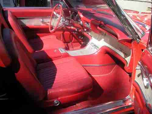 1962 Ford Thunderbird Roadster Convertible. This is a True factory Roadster not aftermarket. In 1962 there were only 1427 Roadsters built. This car did start it's life in the color of Black but is Red now. The car runs and drives well. Top does go up and down as it should. The car is very solid. There are a few spots of bubbling under the paint which are located on both rockers. I have pictures. The paint is very nice as the interior. The top is in excellent condition. There is a dent on the edge of the flap the come up when the top is down. I have a picture. The undercarriage is also solid. I have pictures. I have a picture of the door Tag. I have many pictures if you would like to see just email me. Tires are new. The Kelsey Hayes wire wheels are in very good condition. The bumpers are excellent. Please ask any questions you have. . This car did start it's life in the color of Black but is Red now. The car runs and drives well. Top does go up and down as it should. The car is very solid. There are a few spots of bubbling under the paint which are located on both rockers. I have pictures. The paint is very nice as the interior. There is a dent on the edge of the flap the come up when the top is down. I have a picture. The undercarriage is also solid. I have pictures. I have a picture of the door Tag. I have many pictures if you would like to see just email me. Tires are new. The Kelsey Hayes wire wheels are in very good condition. The bumpers are excellent. Please ask any questions you have.