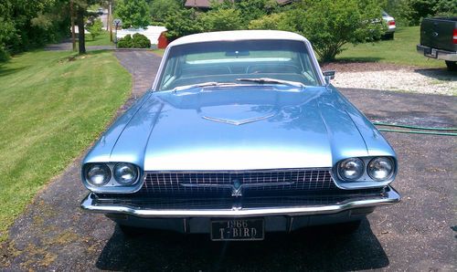 1963 Ford Thunderbird, recently rebuilt original 390, new carb., new dual exaust, new shocks, good tires, new electronic ignition, original interior in great shape, no cracks in dash or steering wheel.the only thing wrong with the interior is the arm rest on drivers side is cracked as per photo other than that, the interior is near perfect, This is a Straight NO Bondo ZERO rust Thunderbird. documentation on all work done. Air conditioner works great, everything works except the clock. Looks and runs great. Color is diamond blue, a very light blue. You would have to look a long time to find a better original car.