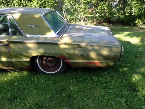 This is a 1965 Thunderbird that I am listing for a friend. This old girl will need a little tlc before you can go cruising or just use for parts. The 390 fires right up, a little loud because the mufflers are rotted out but it seems to run real smooth. The last time it was registered was 1997. The car will yard drive but the brakes should be gone over before it is road worthy not to mention the rust. The floors need help and so do the rear quarters as you can see in the pictures. The car has power windows, power brakes (disc up front) I'm pretty sure it has a nine inch rear but will re-check and post. If I am not mistaken it has about 70 some odd thousand on the clock but not sure what the true mileage is. We have no keys so we have no idea what is in the trunk. The rear glass is broken but all the other glass including the windshield look nice. The interior has typical split seams etc. Clear title in hand. The reserve on this car is only slightly more than could be obtained by scraping it so bid to own. Any questions please call the owner he would be happy to fill you in on any particulars not mentioned above. His name is Norman and he can be reached at 631 722-5670. If no answer please leave a message and he'll get back to you as soon as possible. The car is located in Aquebogue NY on the North Fork of Long Island, 11931. This car is for pick-up as you will not be driving this home.