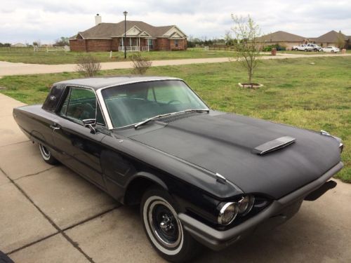 Up for sale is my 1965 Ford Thunderbird. The car does not have a motor and transmission in it right now. The original short block asym is in the trunk. Short block consists of the original 390 Block, painted and ready to be built, crank, rods, and pistons. I had planned on fixing this car up, but I just have too many other projects going on right now. The exterior of this car has great potential. It is super straight, and paint looks great in most areas, there are some spots that looks as if they were wet sanded. As far as I can tell this car is absolutely rust free, and everything looks, sounds, and feels solid. The interior on this car is beautiful. All the chrome trim, and buttons are in place. The headliner is in great shape. The driver seat has a tear, and seems like the foam has lost its cushion, and the floor does need carpet. Besides the driver seat rip, and the carpet, the interior is perfect! Even has the original 1965 Owners manual in the center console. Car is equipped with power windows, swing away steering wheel, power steering, A/C, and disc brakes. Whitewall tires are like new, and comes with 4 original hubcaps, and also 4 spyder caps with 15" beauty rings if you want more of a rat rod kinda look. Car has a clear title. I have another Ford 390 V8 (not original to this car) complete from oil pan to carburetor that can be negotiated ONLY if you are able to pick up in person, and access to a 3spd Cruise O Matic transmission.This car would make a killer cruiser! You don't see black on black very often, so don't let this easy project slip away. Ask any question you need.