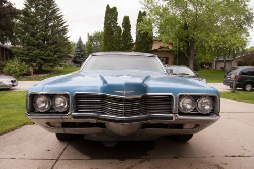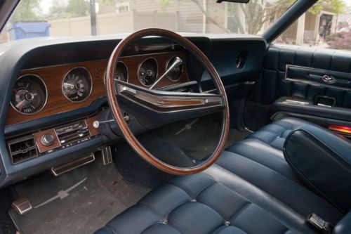 Hi folks, This is a 1971 Ford Thunderbird with suicide doors for sale. The all-around appearance of this 'bird is very nice. It has a very nice blue cloth interior, good solid body, and no breaks or cracks in the windows. Previous owner had put a new exhaust system on two years ago. The tires are in good shape, as are the brakes, lights, chrome, and vinyl top. The 429 Thunderjet motor has a problem: a push rod and lifter will need to be replaced, so it does run a little rough. Also, the windows don't work; the previous owner took off the door panel (as pictured) to fix it, but didn't finish the job. Also, the gas gauge doesn't work. This is a very nice car for someone who knows how to do their own mechanical service. Looks pretty nice cruising down the road. Thanks for looking! |