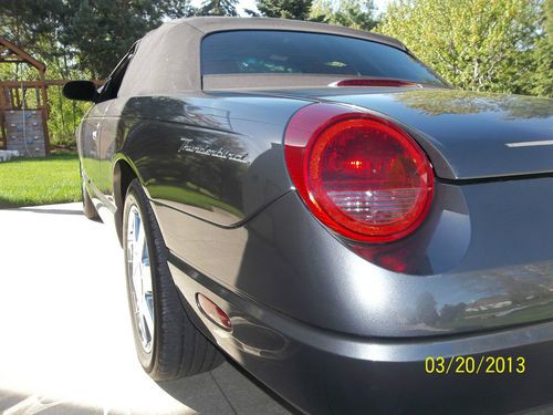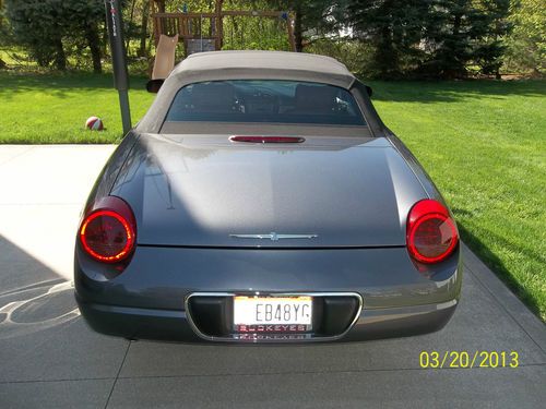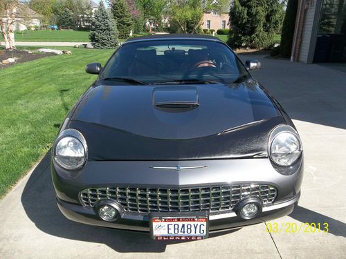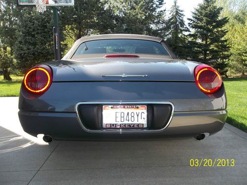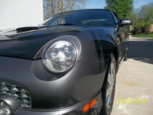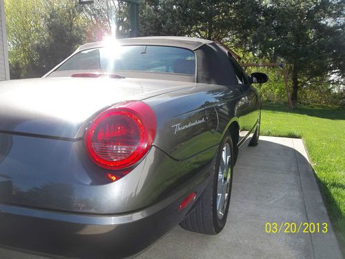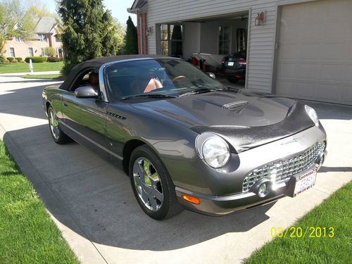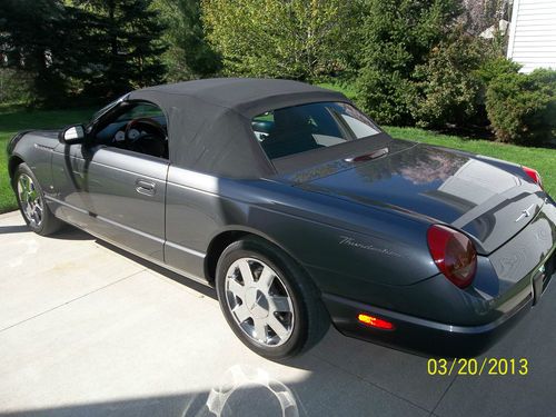 2003 Ford Thunderbird 2 passenger roadster in near mint condition. Sharp mountain shadow grey color with leather saddle accent interior. I am the original owner of this well taken care of and stunning vehicle. Only 29K miles and driven only in the summer. New rear brakes, newer battery, and recent full Ford dealership maintenance performed.