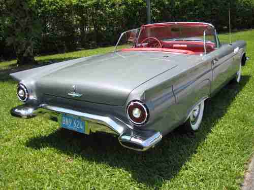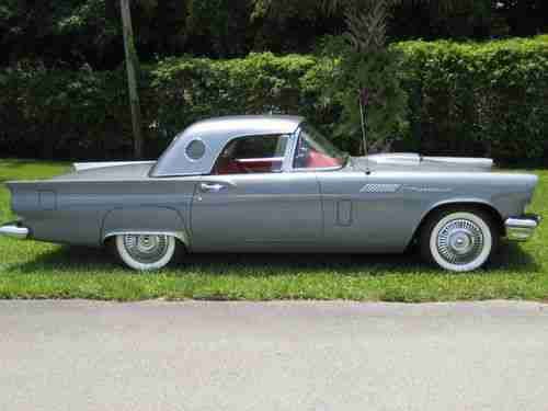 Thanks for checking out our auction on this incredible very original 1957 Thunderbird.This is a really special car the (N code) Gun Metal Gray color is very rare and there are not many like it that we have seen with the(XH code) red interior.This T Bird is a true example of an unrestored and very original classic with the seat cover,door panels,carpet and dash pad recently replaced with correct equipment.All the chrome and stainless trim is original and in good condition.