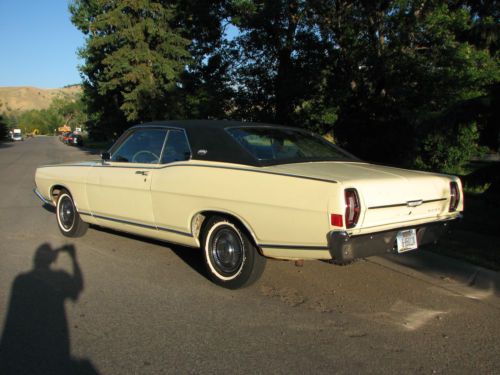 This listing is for an exquisite original and totally un-restored 1968 Ford Torino 2 door hardtop that is in truly exceptional original condition. This car is still wearing all of it's original yellow paint except for the trunk lid which was replaced many years ago. The original black vinyl top is truly beautiful with no cracks, rips or any other damage at all. The interior, including the headliner, seat upholstery, door panels, carpet and dash pad is all original. The headliner and dash pad are about as perfect as one might hope to find on any 46 year old car that has been driven 76,000 miles. The door and rear side panels are very nice except for a few narrow scratches on the upper rear part of the passenger's door panel. The seats and carpets are showing some very minor wear. Both the front and rear seat bottoms are very nice and clean but have 3 cigarette burns in them that a professional upholster sewed up for me. The front and rear seat back rests are in very nice original condition except for some minor soiling that you can see in the photos. The engine runs fine and the transmission works fine too with no apparent oil leaks at all. The brakes do not work at all and the gas tank needs to be cleaned out and coated inside or replaced. Please do not be frustrated because I listed this gem with a reserve. I do that so that I don't have to spend 10 days worrying about giving my car away or have someone shill bid on it or buy it back for me at the end of the auction as some sellers do. I listed a very solid 1967 Pontiac LeMans convertible that was missing an engine and transmission here on eBay about 5 years ago. I figured any A-body GM convertible of that vintage would not need a reserve. My car sold for $2,200 to a collector in New York who wanted the body to fix his rusty 1967 GTO convertible. He was absolutely elated to win that auction and told me that he placed a $7,600 proxy bid on my car in an attempt to make sure he would win it. It really hurt to find out that I left over $5,000 on the table on that deal so that is part of the reason I generally use a reserve on my vehicle listings here. I figure I that I don't need a reserve on any Chevelle or Corvette I might list here but I learned through experience that I need a reserve on most other vehicles I might list here. My phone number is 406-799-1847 so please feel free to call me with any questions you might have. If this car does not meet my reserve and you are serious about owning it, please call me so we can work out a deal after this listing ends. I can then make you a "second chance offer" so that you can own this very special automobile.