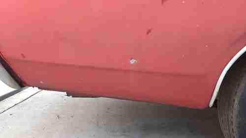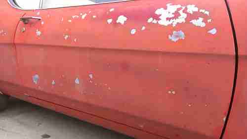 Body is in need of paint, hood is shot, fenders are rust free except for light scale..no holes, outside of the doors have a few small bubbles appearing on the outside but there are no holes showing on the outside, the drivers door has a hole in the bottom corner but can be repaired and should be as the bottom of the door is ok. The trunk lid has one spot on the out side but is definitely repairable as the underneath is ok. The quarters do not show any rot and the lips are ok, but there are signs of old body work to the pass quarter from inside the trunk, old school rivets can be seen near the wheel well. Roof is ok. The tail light panel is ok.