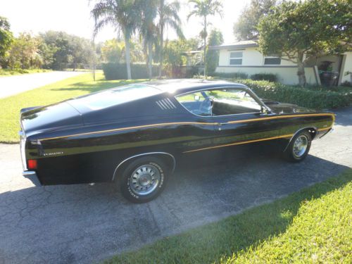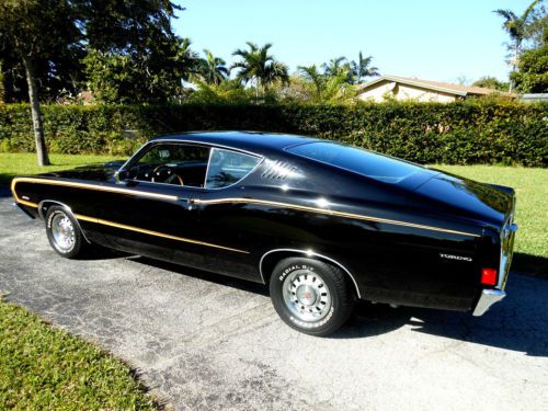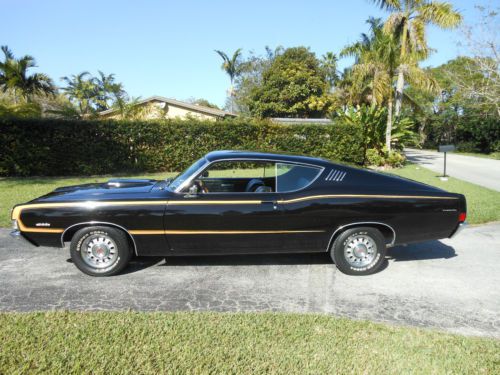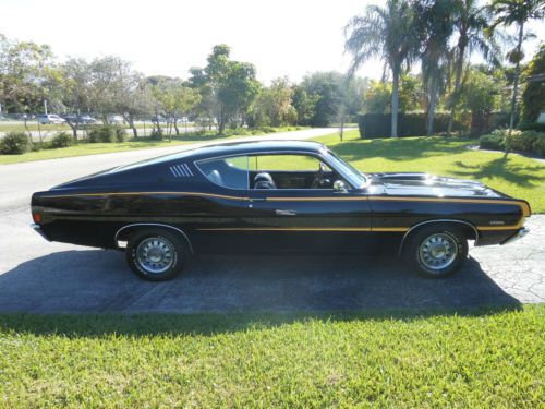 VERY RARE (1 of 1) FASTBACK CALIFORNIA CAR 1968 FORD TORINO GT FASTBACK COUPE FACTORY 390 V-8 4BL AUTOMATIC This is a Beautiful, Very Rare Fastback Torino GT in Raven Black with the Reflective Gold C-Stripe, black interior with Bucket Seats and Center Console, that I have lovingly owned and cared for, for nearly 9 years. The Marty Report, states this car is a "One of One" California Car. It is Number's Matching, and has the factory original (untouched) 325 Hp 390cid 4V HiPo V-8 Engine with a C-6 Automatic Transmission that was rebuilt about 10,500 miles ago. This 45 year old car has only 107,000 original miles (2400 miles) per year, and in the 9 years since I've owned it. It's only been driven less than 4,000 miles (445 miles) per year. I bought this car from it's 3rd owner who nearly restored the car. The front and rear window moldings were replaced. This car came equipped with Factory Air Conditioning, but somewhere along the line it was removed, why? I don't know, but I have all the missing parts, including the hardware and brackets. The original wheels, caps, and rings have been restored, it has a new 4 Core Radiator using the original Tanks. It has a Flowmaster Aluminum Dual Exhaust System with Two 3 Chamber Flowmaster's hung just like Factory, no holes were drilled into the floors. I had the entire front suspension replaced 2 weeks after I bought it, including new ball joints, upper and lower shaft bushings, wheel bearings, both front springs, and steering linkage, the 2 front Park and Turn Signal Lens. Recently I have replaced the Power Brake Booster, Brakes Pads, Rotors, Power Steering Pump and hoses. Pertronix Point Set and Coil for more reliable starts. Runs great! This car comes with a lot of documentation, such as the Full Deluxe and Framed Marty Report, the original Owner's Manual with the original owners name hand written by him on the in side cover, and Warranty Booklet, DMV Registrations from previous owners, Receipts, Work Orders, Production Numbers, Invoices for Parts, Original Magazine Add from 1968 with the exact same image as this car, etc… This car is a Multiple Antique Show Winner including a "Peoples Choice Award", an all Ford "Best in Show", and an "AACA National 3rd Junior". SHOULD YOU HAVE ANY QUESTIONS (Serious Inquiry's Only), PLEASE FEEL FREE TO E-MAIL OR CALL ME ON MY