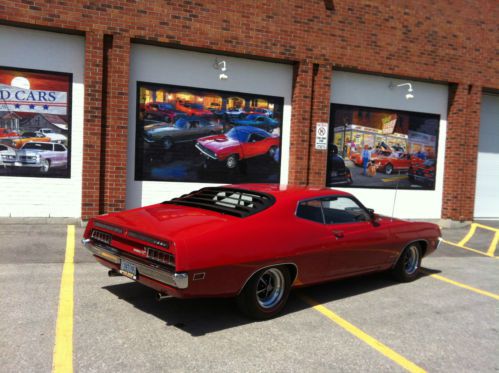 This is a mint condition 1970 Torino 429 Cobra Jet Ram Air car: ribbon tach, 4 speed, bucket seats, center console, traction lock rear end, 411 gears, 2 year old restoration, part of a major collection. Intake manifold and carburetor updated but have originals. The rest of the car is totally original. Will help with shipping.