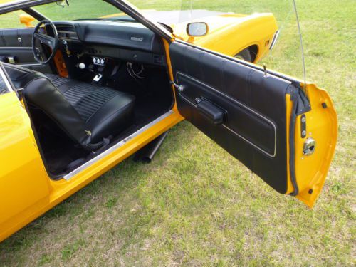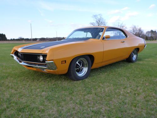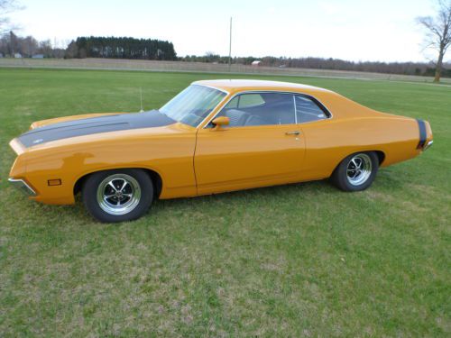 Up for sale is my 1970 Ford Torino. It was just completely redone. Interior,exterior, drivetrain as good and in many cases better than new. I am putting a down payment on a piece of property so it has to go. It has a full Marti report that details just how rare it is. The engine was rebuilt with 2V heads for streatability bolted to the stock 1V intake. The block was bored 30 over with TRW forged pistons and ARP rod bolts. The cam is a Comp Cam 270 with matching springs, keepers and retainers. Also hardened 5/16 pushrods, crane guide plates and steel roller tip rocker arms were installed. It has new belts, new radiator hoses and a new 4 core radiator. The 4 speed transmission was fully rebuilt and at that time a new pressure plate and clutch were installed. The brakes have been completely serviced. The power steering pump was also rebuilt. The exterior speaks for itself. We went with grabber orange and satin black for the hood and rear stripes. They were professionally painted on not decals. The paint job is flawless and not much body work had to happen as it was originally from the pacific northwest with 41000 actual miles and not rusty. The under side of the car was also painted black. The bumpers are brand new as are the wheels and tires. I have most all receipts for the work and new parts. The carpet is new, seats professionally redone, new headliner, new door panels all the gauges and lights work, etc. We put new springs in the rear and new shocks in the front. While we were at it we also lowered the car from stock a couple inches for the look and ride quality. Then exhaust is custom Masterflow that crosses in an x pattern than tucks up nice neat and sounds awesome. The car runs out and drives beautifully. Im going to hate to see it go. It doesn't have a radio. It is wired up and has new speakers I just never got around to putting a radio in it. There are two small pieces of chrome on the rear of the window that could use re chroming. Those are really the only issues I can think of with the car. You are basically buying a 100 % restored and completed muscle car ready for a show or to hit the streets as soon as you get it. Thanks for looking and feel free to call or email with any questions Jeff 269 501 8189 |