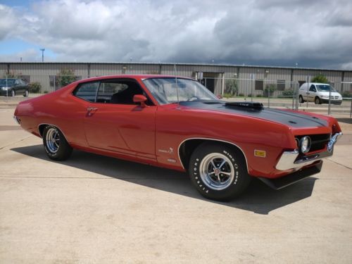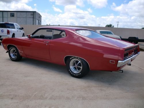 FOR SALE IS A RARE, RED 1970 FORD TORINO, RAM AIR 429 C.I./370 HP, COBRA JET ENGINE, A 4-SPEED TRANSMISSION AND 3.00 REAR TRACTION-LOK AXLE RATIO. VIN # 0H38J122918. CAR HAS A COMPLETE MARTI-REPORT & A LETTER FROM FORD MOTOR COMPANY CUSTOMER ASSISTANCE CENTER (DATED 1998) CONFIRMING THIS CAR'S OPTIONS. THE CAR HAS JUST COMPLETED A FRAME ON RESTORATION. THIS CAR WAS FACTORY EQUIPPED WITH BOTH POWER FRONT DISK BRAKES & POWER STEERING. HERE ARE THE MART-REPORT DOCUMENTED NUMBERS FOR THE 1970 FORD TORINO-FAIRLANE: 429,134...Total cars produced. 7,675.......only Cobra 2-door Sportroofs produced 2,131.......ONLY Ram Air 429 C.I./ 4-speed coded cars PRODUCED. 344..........ONLY with these Paint/Trim codes produced. 9..............ONLY with Color Keyed Racing side mirrors PRODUCED. THIS CAR HAS A FRESH MOTOR. IT HAS THE NUMBERS MATCHING SHORT BLOCK WITH DATE CODE CORRECT HEADS & INTAKE. THE ENGINE HAS A PERIOD CORRECT 4 BBL HOLLEY CARB & HOOKER HEADERS INSTALLED (FACTORY EXHAUST MANIFOLDS INCLUDED). NEW DISTRIBUTOR & WATER PUMP. FRESH TUNE UP WITH ALL NEW FLUIDS,SPARK PLUGS & WIRES. THE TRANSMISSION HAS A NEW CLUTCH & HURST SHIFTER (FACTORY T-HANDLE INCLUDED). THE ENTIRE FRONT END HAS BEEN TOTALLY REBUILT WITH NEW PST SUSPENSION PARTS. THIS EVEN INCLUDES NEW LOWER CONTROL ARMS. NEW SHOCKS BOTH FRONT & REAR. BOTH FRONT FLOOR PANS (LEFT & RIGHT) & TRANSMISSION TUNNEL WERE PROFESSIONALLY REPLACED. THE BOTTOM OF THE CAR WAS BLASTED CLEAN THEN THIN UNDER COATING WAS APPLIED. THE CAR WAS PAINTED ABOUT 6 MONTHS AGO THE FACTORY COLOR. THE SATIN HOOD WAS ACTUALLY PAINTED ON & IS NOT A VINYL DECAL. I HAVE MOST EVERY RECIEPT FOR THE CAR. THE INTERIOR HAS BEEN REPLACED WITH NEW HEADLINER, NEW FRONT & REAR SEAT COVERS, CARPET & SEAT BELTS. ALL THE LIGHTS WORK. THE CAR IS NOT PERFECT AND IS NOT 100% ORIGINAL. BUT IT COULD BE PUT BACK ALL ORIGINAL WITH JUST A FEW PARTS. IT IS A VERY NICE CAR THAT COULD NOT BE REPRODUCED FOR WHAT THIS CAR CAN BE BOUGHT FOR. THE CAR LACKS THE REAR WINDOW LOUVERS & CENTER CONSOLE. THE RIBBON TACH IS INSTALLED BUT DOES NOT WORK ARE THE ONLY ISSUES THAT NEED ADDRESSED. FOR SERIOUS BUYERS I WILL GLADLY DISCUSS THE CAR IN DETAIL AND I HAVE SOME UNDER CARRIAGE PICTURES AVAILABLE. PLEASE ASK ANY QUESTIONS BEFORE BIDDING!! THANKS, JAY