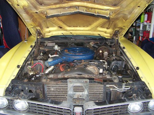 The Torino starts and runs, but idles rough with shaking at times and runs very rich (maybe the carb needs rebuilt?), transmission is fine, but this will need a good tuneup (new battery and spark plug wires have been installed, but that's as far as it got). You will need to transport the vehicle on a trailer until you get these things done. I am nowhere near a car expert so this is being sold "as is where is". I literally bought the car, drove it around the block and put it in the garage for the last year :( Regular maintenance looks to have been done on the vehicle and I have a large book of paperwork from the past owners, as well as the original invoice! Car also has extra parts in the trunk, including a pair of NOS racing mirrors that the last owner purchased for $420 when he bought the vehicle back in '05. Cosmetically (please see condition report) there are some shallow dents and with the largest on the front right fender, some scratches, paint worn off the top of the driver door where someone rubbed their watch back and forth for years, the radio is in the glovebox, a small damaged spot on the right side of the grill, missing the Torino badge on the hood, general wear from a vehicle of this age, but overall it looks very nice; no rust; people will love this car just as it sits, but with the right elbow grease and time you could have yourself a $30,000 muscle car.