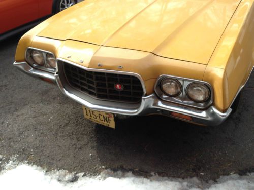 Selling a true barn find an all original 1972 Ford Gran Torino. The car runs and drives but definitely needs some work to make it pretty again. Floors and trunk are in great shape although fenders need a patch and some paint. Seat is also ripped but doors, and carpet and dash are in decent shape. Glass is all good and goes up and down smoothly. Radio lights and gauges all work well. Please call with any questions Paul 973-668-1338