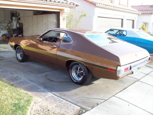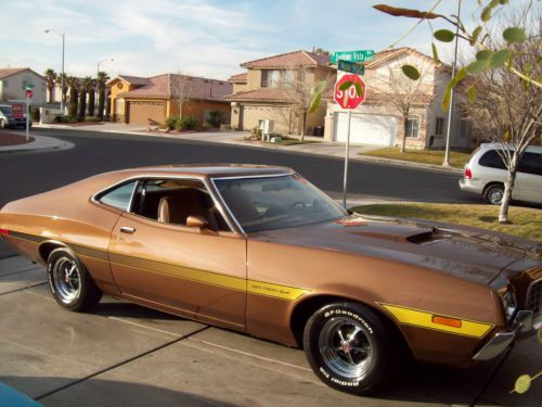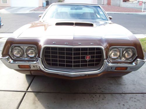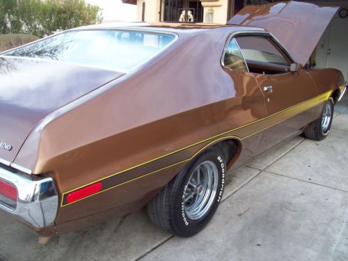 1972 Gran Torino Sport Fastback, 79k original miles all original, 351 Cleveland, C-6 transmission, full gauges factory A/C # matching* Excellent condition, all original, numbers matching with only Laser Stripe added & a repaint slightly darker color from original Ford factory color, has had some body work in the usual places but done professionally, body is super strait, trunk & floors solid Engine transmission never has been touched ,still drives & runs excellent has new carpet, headliner Dash door panels all original & in great condition, spent 6 thousand on paint & body, 2 stage clear, buff, Looks outstanding! Brown with brown interior, the seats insert has been re-upholstered to original specs, has full gauge package Everything works as it should, heat, A/C, ( might need charging but does work), all Glass Chrome,& emblems are in Excellent condition like new! Nice magnum 500 rims White letter tires ready to drive, I may have missed some things but the car speaks for itself, Also at the time of the pictures the brand new dual exhaust was not installed, I will have more pictures very soon, Bid now 3 days only, Must sell, if reserve not met I will keep for myself so bid good if you like it, Thanks
