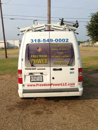 Good used Ford Transit Connect. There are no known mechanical issues. The van has a dual retracting ladder rack. It also has shelves and a large drawer in the back. The lettering on the van is just stickers that can be removed.