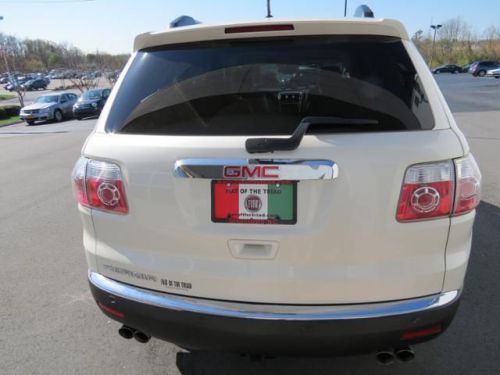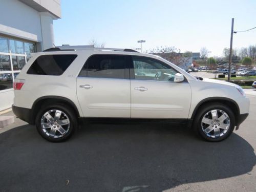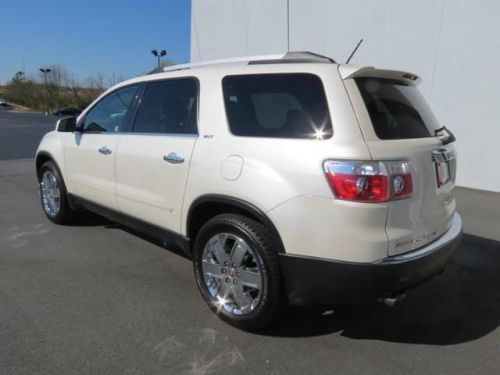 This white diamond tricoat 2010 GMC Acadia SLT-2 SUV is the idyllic family car and has a maximum cargo space at 116.9 cubic feet! Standard features on this professional grade crossover include front/side/head airbags, child safety locks, child seat anchors, park assist, and back up camera ensuring the safety of everyone in the vehicle. This Acadia is also equipped with AM/FM/CD/MP3 and Sirius XM satellite capabilities, BOSE sound system, steering wheel stereo controls for ease of use, memory settings for your driver seat which are heated for those cold days, third row seats which fold down for more space, leather interior, dual climate control, cruise control, AC, full power accessories, entertainment system, navigation system, remote trunk release and remote vehicle start! The exterior of this vehicle includes a spoiler and 20 chrome wheels as well as a tow package. This Acadia gets an average of 17/24 MPG and has a 5 star safety rating! Call Fiat of the Triad, located in Greensboro NC, to schedule a test drive today! * The advertised price does not include sales tax, vehicle registration fees, other fees required by law, finance charges and any documentation charges. * Images, pricing and options shown are examples, only, and may not reflect exact vehicle color, trim, options, pricing or other specifications.