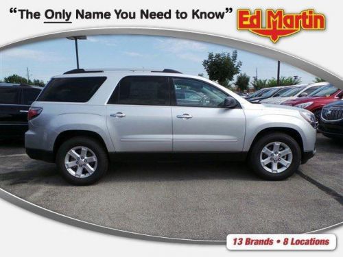 The 2014 GMC Acadia personifies a never say never attitude with its flexible, accommodating space and functionality. Featuring distinctive, bold lines, a confident stance, the Acadia comes with aluminum wheels and automatic on/off headlamps. Body color moldings keep a sleek uniform look. Additionally, there are roof-mounted luggage rails to make family outings as convenient as possible. The interior of the Acadia features attractive trim accents and a soft instrument panel wrap, as well as soothing ambient lighting accents. Additionally, there is underfloor storage behind the flat-folding third row. Rear Park Assist aids by providing audible warning sounds as the rear of the vehicle approaches an object. That, combined with a Rear Vision Camera, makes those complicated parking situations a breeze. A USB port allows you to connect a supported music device for your listening pleasure. All 2014 Acadia models now include two USB ports on the rear of the center console for charging phones and other portable devices. The Acadia is driven by a 3.6L V6 Engine capable of 288 hp at 6300 rpm. Plus, the torque is more than enough to handle a small boat or trailer. The Acadia also affords you the option of a 6-speed AWD automatic transmission or a 6-speed FWD automatic transmission. The dual exhaust allows for an even exhaust flow and are intentionally turned down to prevent any protrusion from the body. The Acadia gives you the extra peace of mind with its host of safety features. An array of air bags protects you from all angles. The StabiliTrak system aids in driving in low traction situations, to keep you in control at all times. The 4-wheel antilock disc brakes grant you the stopping power that you need. Finally, a tire pressure monitoring system keeps you informed via the instrument panel, so you never have to second guess when it is time for a refill.ENGINE 3.6L SIDI V6 (288 hp [214.7 kW] @ 6300 rpm 270 lb-ft of torque [364.5 N-m] @ 3400 rpm) (STD), TRAILERING EQUIPMENT i Pricing includes destination, optional equipment and reflects manufacturer incentives. We pride ourselves in having an upfront, completely transparent purchase process. Nothing hidden and no surprises! Our goal, to create an automotive buying experience that will last a lifetime. Our hope, you will share your Ed Martin Experience with others. Sincerely, Ric McCoy General Manager