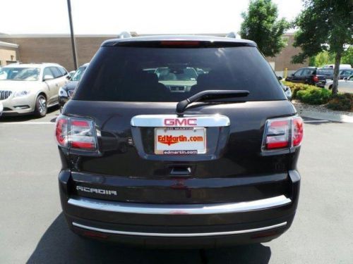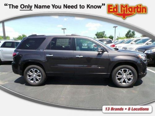 The 2014 GMC Acadia personifies a never say never attitude with its flexible, accommodating space and functionality. Featuring distinctive, bold lines, a confident stance, the Acadia comes with aluminum wheels and automatic on/off headlamps. Body color moldings keep a sleek uniform look. Additionally, there are roof-mounted luggage rails to make family outings as convenient as possible. The interior of the Acadia features attractive trim accents and a soft instrument panel wrap, as well as soothing ambient lighting accents. Additionally, there is underfloor storage behind the flat-folding third row. Rear Park Assist aids by providing audible warning sounds as the rear of the vehicle approaches an object. That, combined with a Rear Vision Camera, makes those complicated parking situations a breeze. A USB port allows you to connect a supported music device for your listening pleasure. All 2014 Acadia models now include two USB ports on the rear of the center console for charging phones and other portable devices. The Acadia is driven by a 3.6L V6 Engine capable of 288 hp at 6300 rpm. Plus, the torque is more than enough to handle a small boat or trailer. The Acadia also affords you the option of a 6-speed AWD automatic transmission or a 6-speed FWD automatic transmission. The dual exhaust allows for an even exhaust flow and are intentionally turned down to prevent any protrusion from the body. The Acadia gives you the extra peace of mind with its host of safety features. An array of air bags protects you from all angles. The StabiliTrak system aids in driving in low traction situations, to keep you in control at all times. The 4-wheel antilock disc brakes grant you the stopping power that you need. Finally, a tire pressure monitoring system keeps you informed via the instrument panel, so you never have to second guess when it is time for a refill.AUDIO SYSTEM COLOR TOUCH RADIO WITH INTELLILINK AND REAR SEAT ENTERTAINMENT 6.5 diagonal touch-screen display AM/FM/Sirius Pricing includes destination, optional equipment and reflects manufacturer incentives. We pride ourselves in having an upfront, completely transparent purchase process. Nothing hidden and no surprises! Our goal, to create an automotive buying experience that will last a lifetime. Our hope, you will share your Ed Martin Experience with others. Sincerely, Ric McCoy General Manager